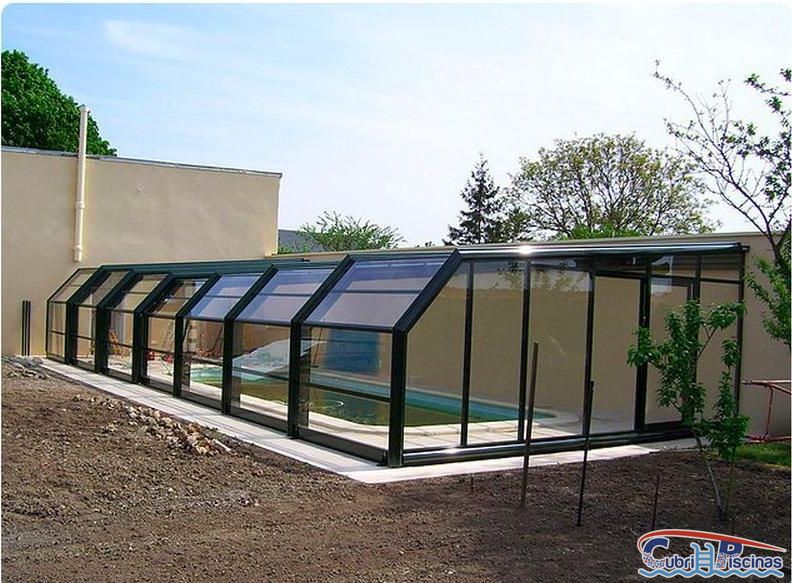 En función del ancho de la cubierta de piscina podrá fabricarse a un agua hasta los 7.80 metros y hasta los 8.40 metros si es a dos aguas, dependiendo de la altura del muro o pared existente en ese lateral donde se adose.