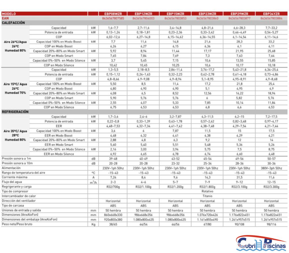 • Eficiencia Energética: Alta, gracias al COP en diversas condiciones de temperatura.