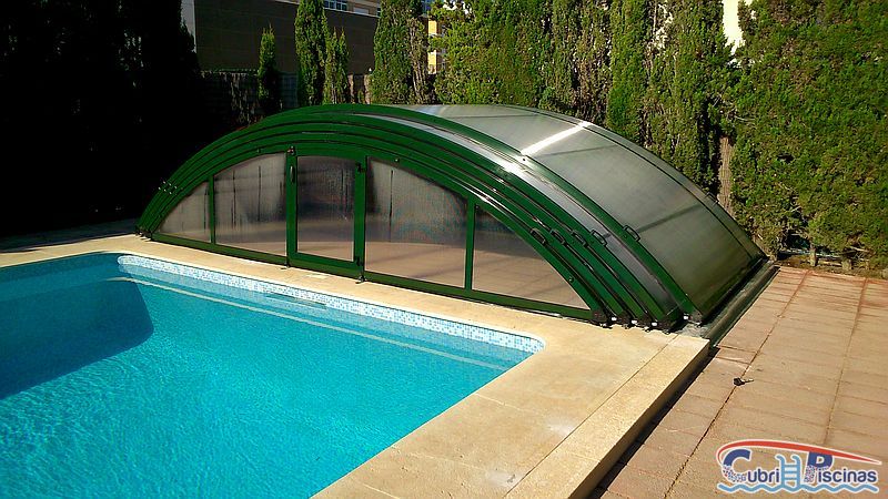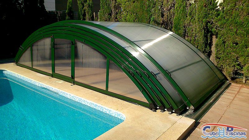 Proyecto de Cubierta para piscina baja telescópica curva en color verde