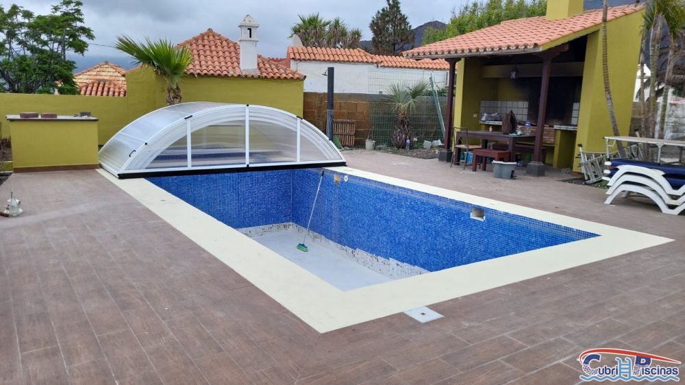 Una vez pasado el episodio del Volcán en la Isla de la Palma, Cubripiscinas les presenta la instalación de una nueva cubierta para piscina baja telescópica en forma de media luna en "las Manchas" muy, muy cerca de donde pasó la lengua de lava junto a ésta vivienda. Esperemos que tarde muchísimos años con otra tragedia como ésta y que la cubierta de piscina cumpla con su cometido hasta entonces.