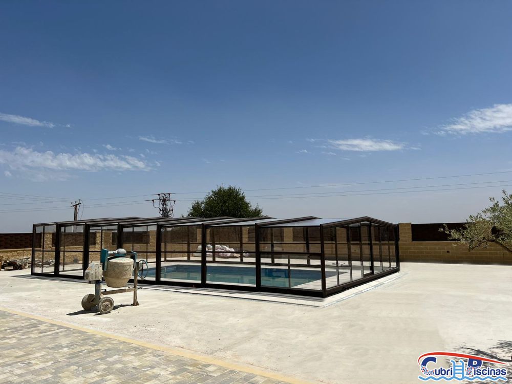 Les presentamos nuestra última instalacion realizada en Cuenca, en éste caso es una Cubierta para Piscina Telescópica alta, entendimos la sujerencia del cliente porque quería que en la temporada de verano la Cubierta Piscina se quedase recogida completamente fuera del vaso por lo que nos adaptamos a su petición colocando un séptimo módulo, lacada en color madera a juego del entorno.